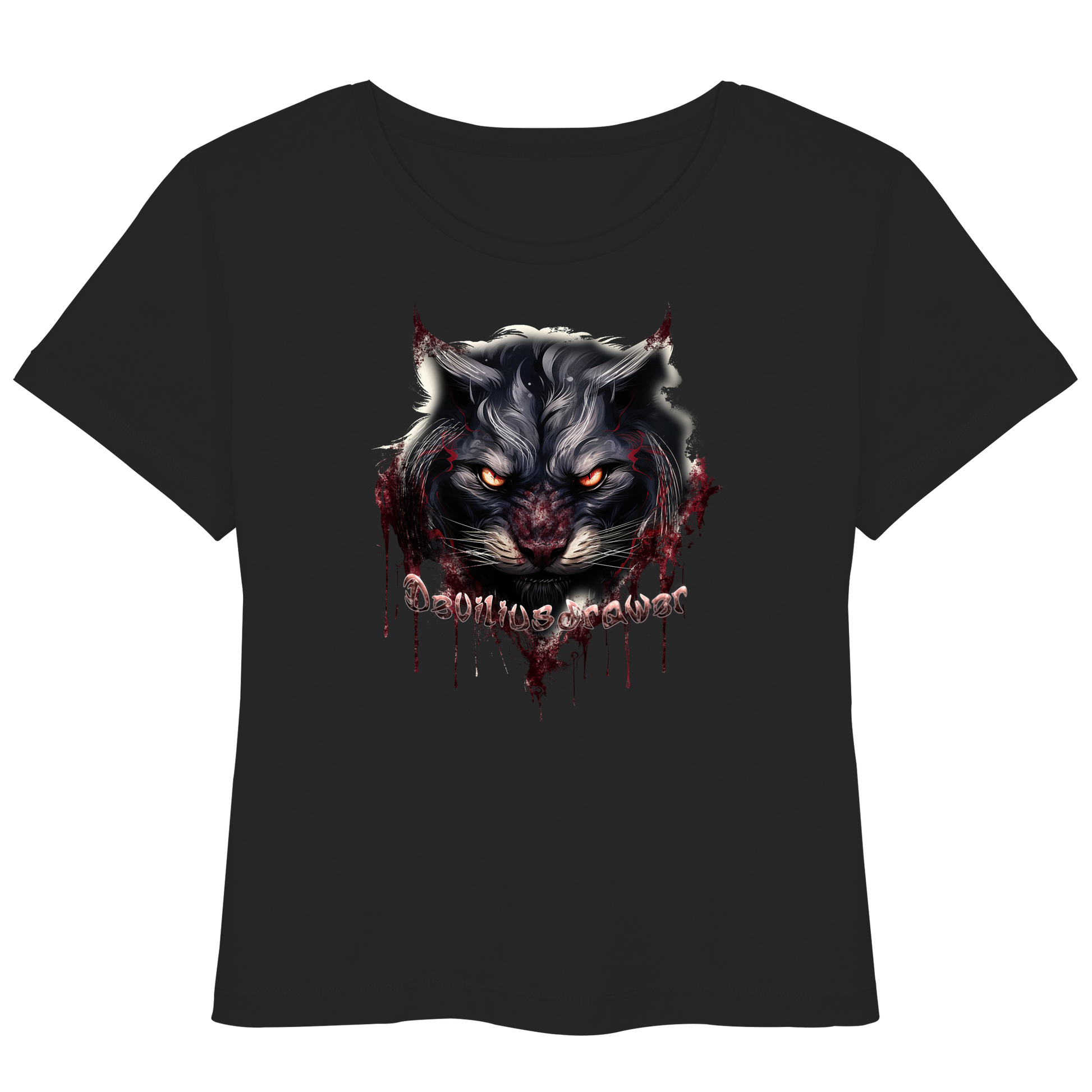 Spüre die Energie und Stärke mit dem Deviliusdrawer Badass Cat Damen T-Shirt. Dieses limitierte Design vereint Kunst und Organik und spricht die Rebellin in dir an. Der furchtlose Blick der Katze, in tiefem Schwarz und intensiven Rottönen gehalten, symbolisiert Kraft und Unabhängigkeit.