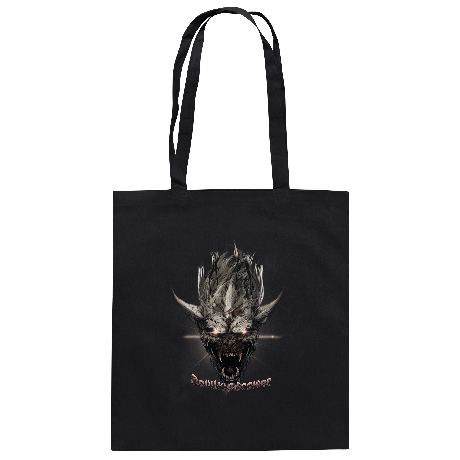 Visuelle Elemente: Die Tasche zeigt ein eindrucksvolles Werwolf-Motiv, mit detailreichen, wilden Zügen und leuchtenden Augen, die einen geheimnisvollen Charme versprühen. Der subtile Einsatz von Schattierungen verleiht dem Design eine tiefere Dimension.