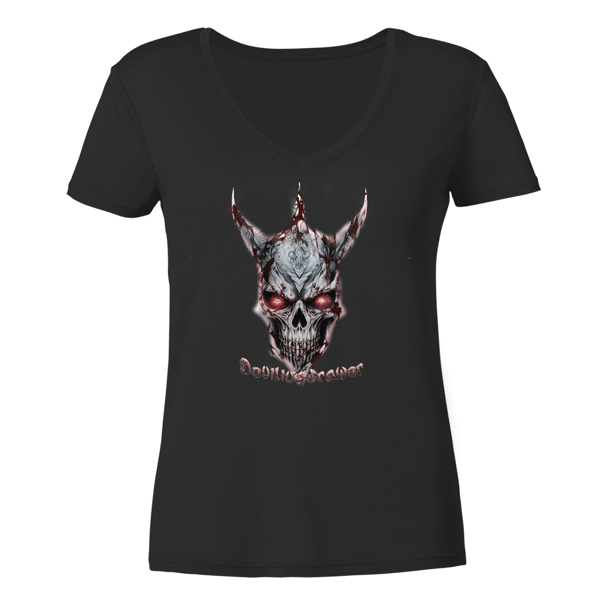 Entdecke deine dunkle Seite mit dem Deviliusdrawer Bloody Skeleton Damen V-Neck Shirt. Dieses limitierte Design kombiniert einen furchterregenden blutigen Schädel mit intensiven roten Akzenten, die sofort ins Auge fallen. Der V-Ausschnitt und die normale Passform sorgen für einen tollen Tragekomfort, während der Bio-Baumwollstoff ein angenehmes Hautgefühl bietet. Perfekt für alle, die ihren rebellischen Stil ausleben möchten.