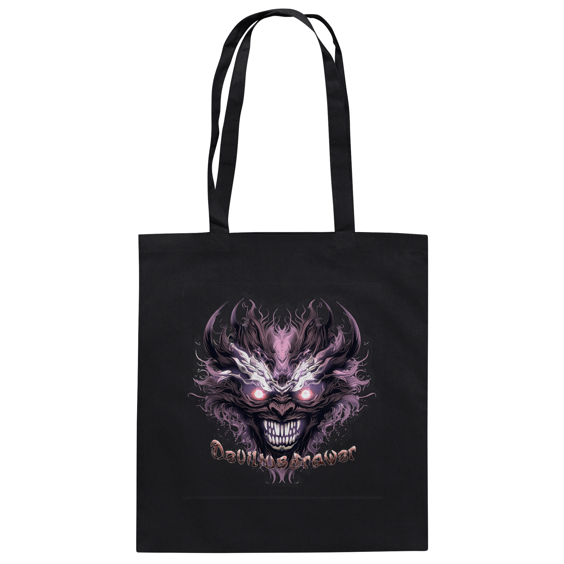 Mit einem furchteinflößenden Dämonenmotiv in lebhaften Lila- und Weißtönen, zieht diese Tasche alle Blicke auf sich. Die leuchtenden Augen und das kraftvolle Lächeln symbolisieren Stärke und Individualität.