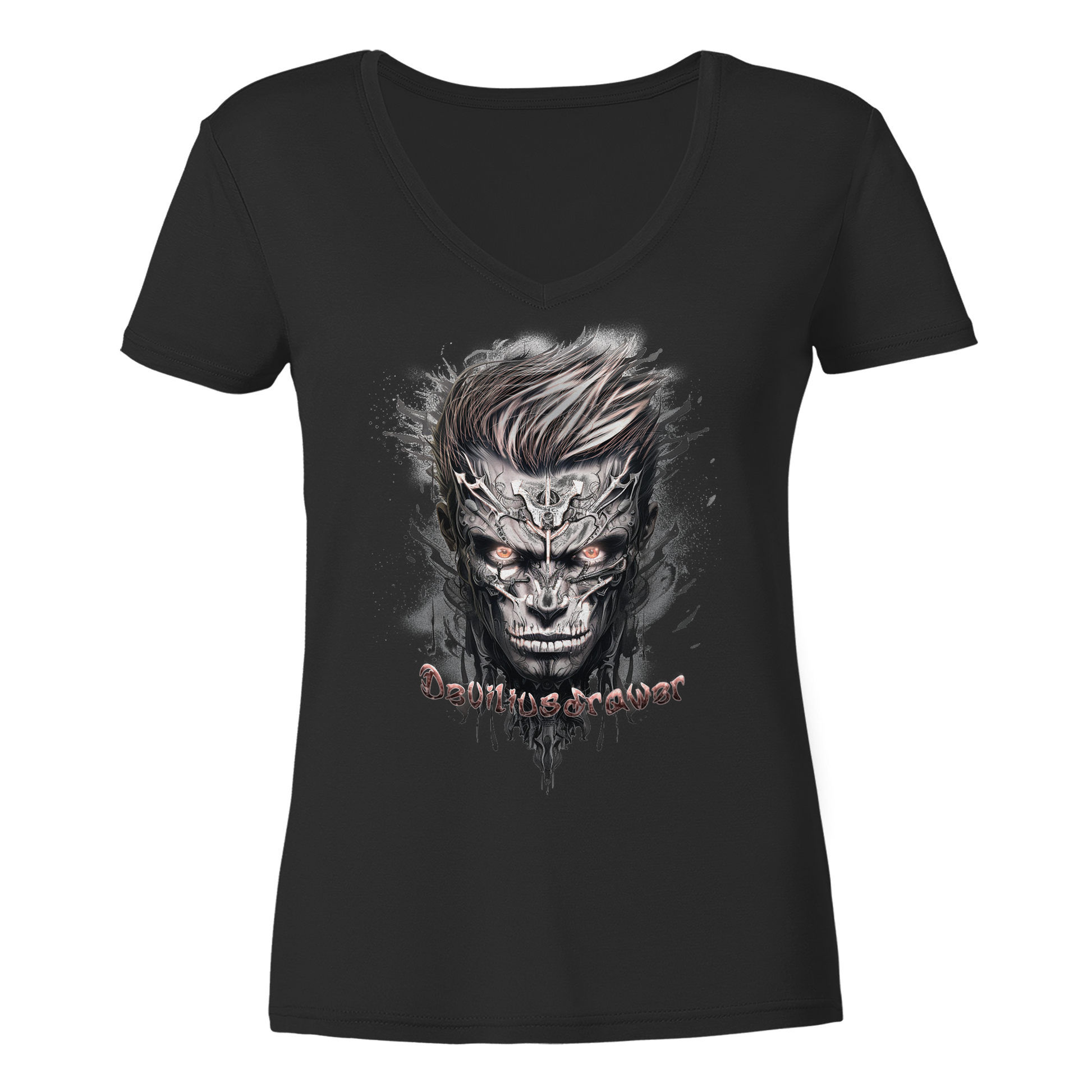 Erleben Sie die Fusion von Mensch und Maschine mit unserem Deviliusdrawer Cyborg Men - Ladies V-Neck Shirt. Diese limitierte Auflage bringt das kraftvolle Cyborg-Design direkt zu Ihnen nach Hause.