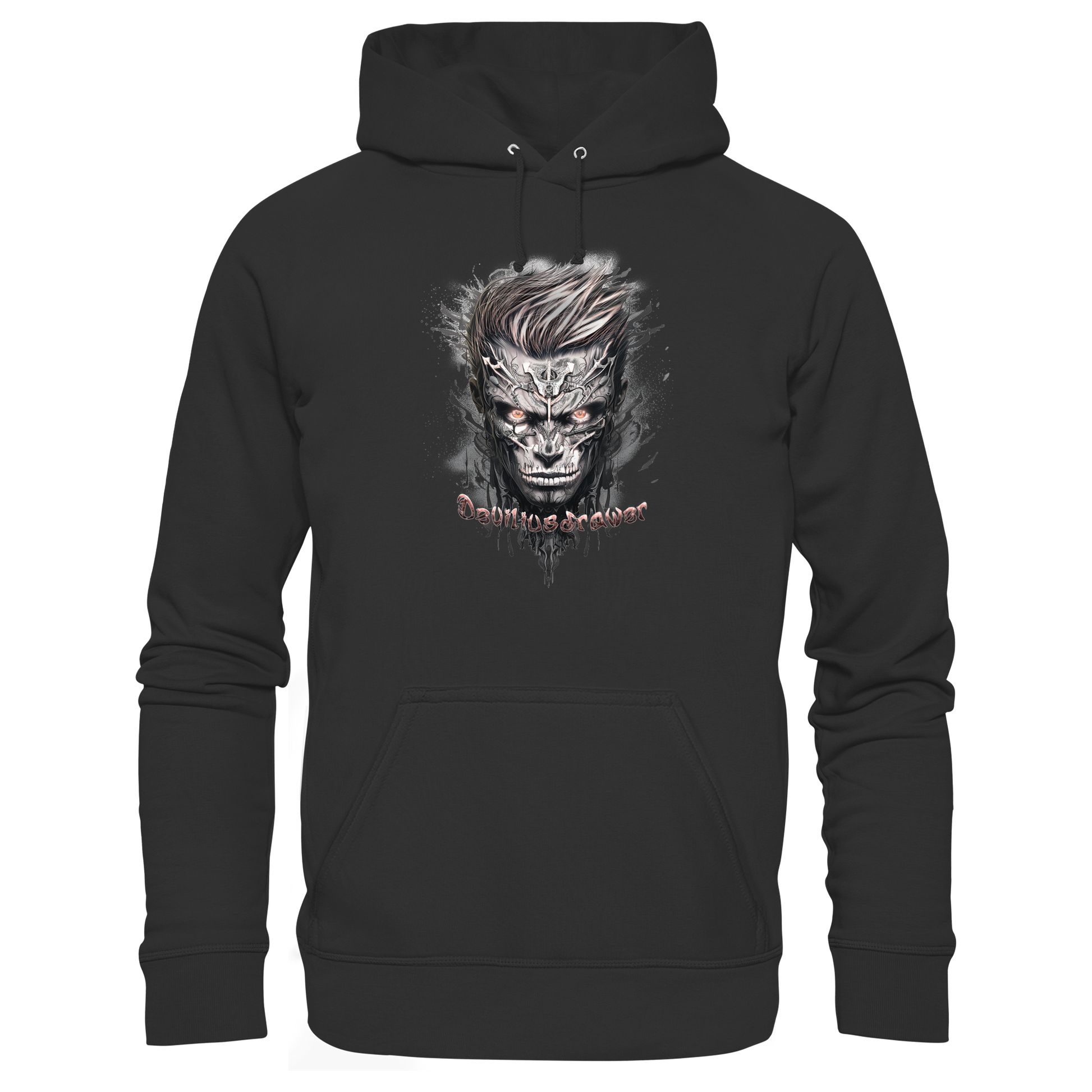 Erleben Sie die Verschmelzung von Natur und Technik mit dem Deviliusdrawer Cyborg Men - Organic Basic Hoodie. Dieser limitierte Hoodie ist nicht nur ein Kleidungsstück, sondern eine Aussage. Das beeindruckende Cyborg-Design mit seinen markanten, metallischen Strukturen auf einem organischen Hintergrund zieht alle Blicke auf sich und erzählt die Geschichte der Symbiose von Mensch und Maschine.