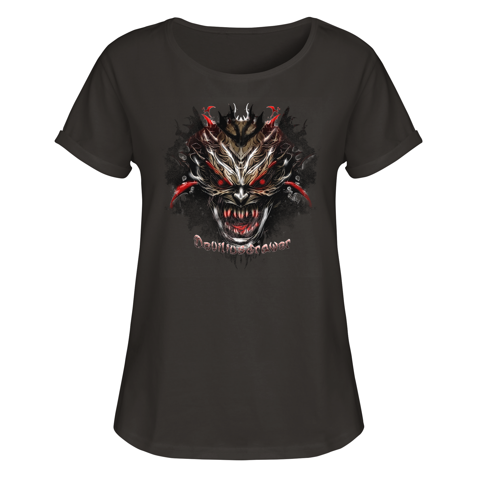 Erlebe die kraftvolle Energie des Deviliusdrawer Dark Redeyed Devil Damen Roll-Up T-Shirts. Mit seinem furchteinflößenden Design und den durchdringenden roten Augen weckt es den rebellischen Geist in dir.