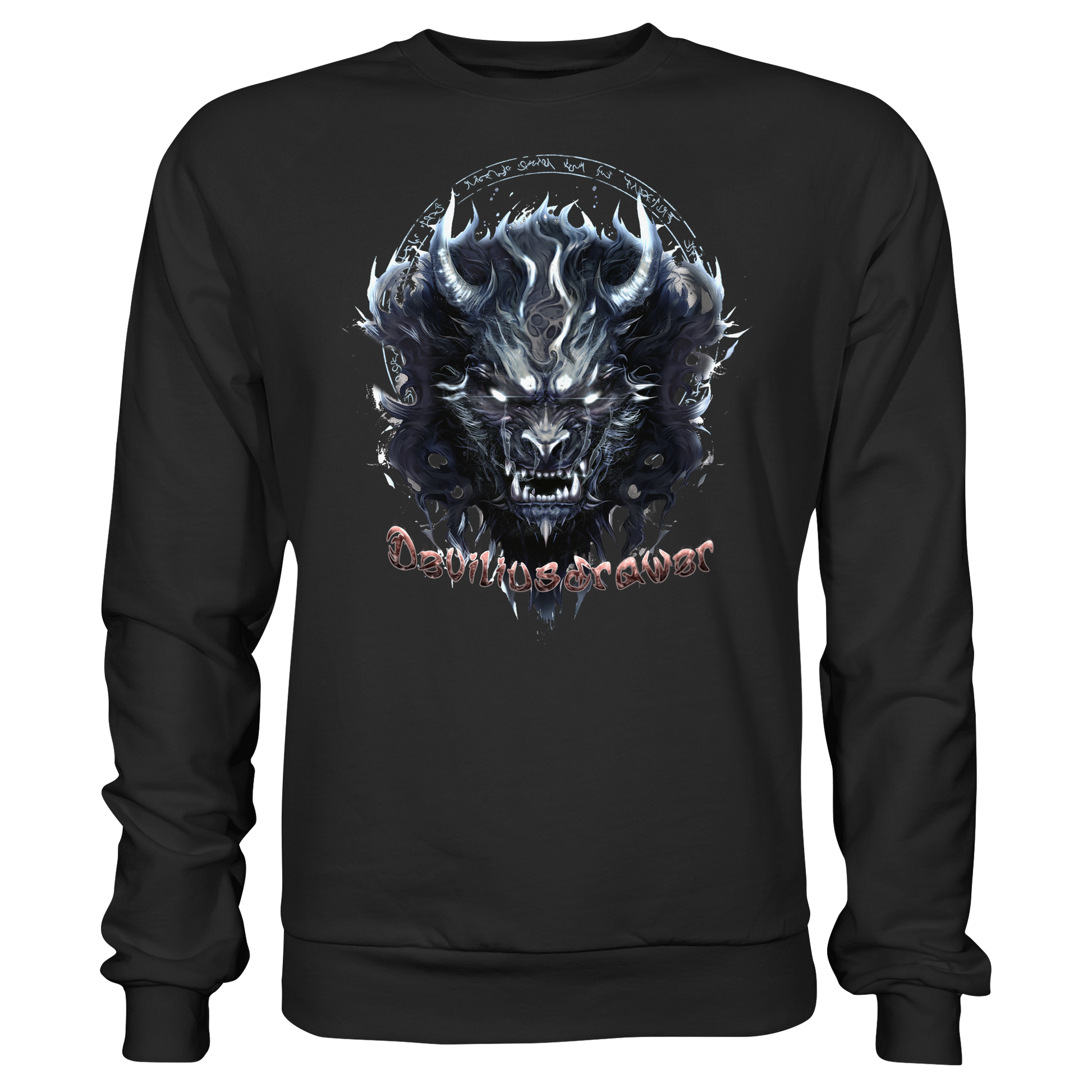 Entdecke die Dunkelheit in dir mit dem Deviliusdrawer Dark Wolf Mask Sweatshirt.