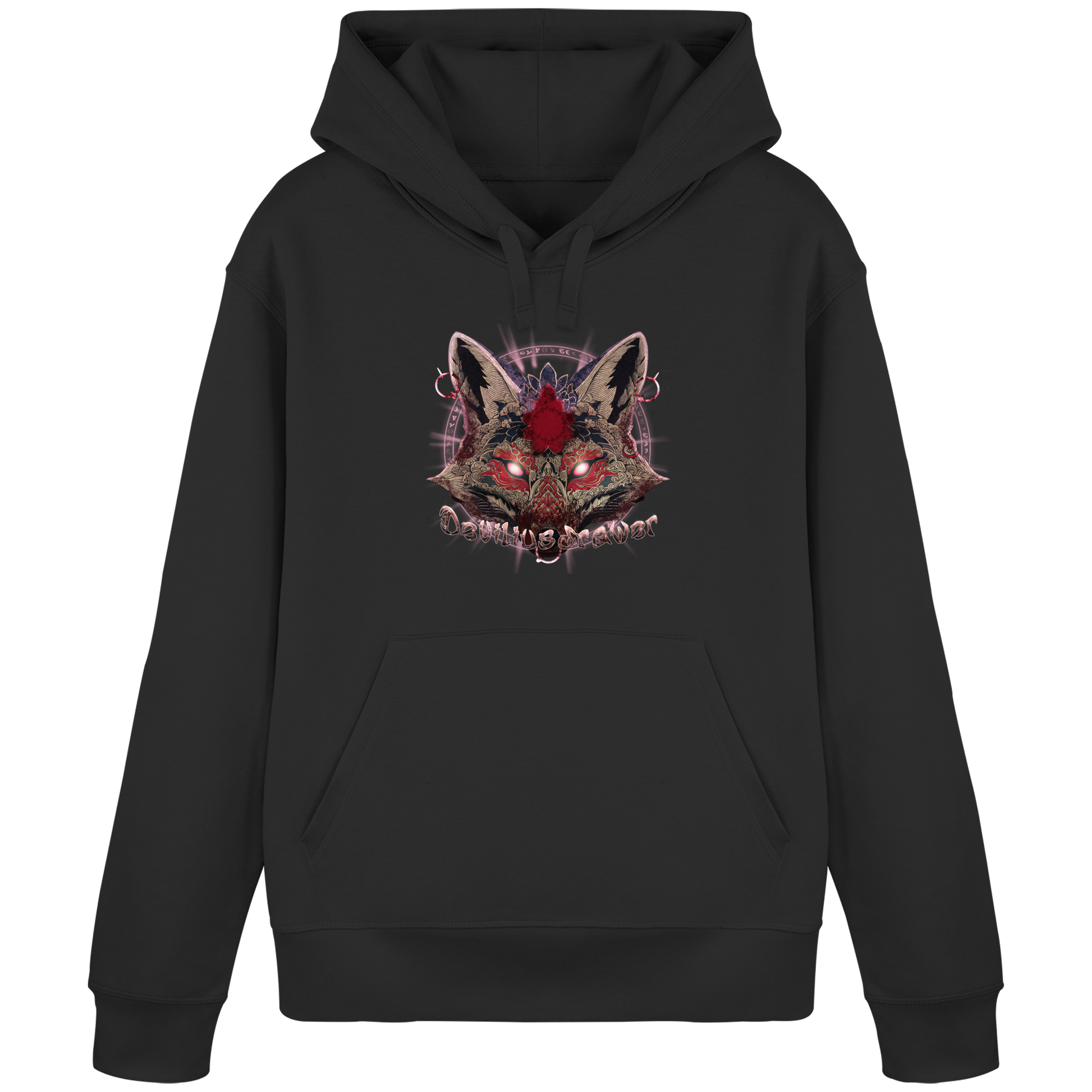 Der Deviliusdrawer Demon Kitsune - Organic Basic Hoodie vereint fesselnde Kunst mit nachhaltiger Mode. Sein einzigartiges Design zeigt einen kunstvoll gestalteten Kitsune, der von mystischen, roten und schwarzen Farbtönen dominiert wird. Die fein gearbeiteten Muster und Details erwecken den Geist des japanischen Fuchsgeistes zum Leben.