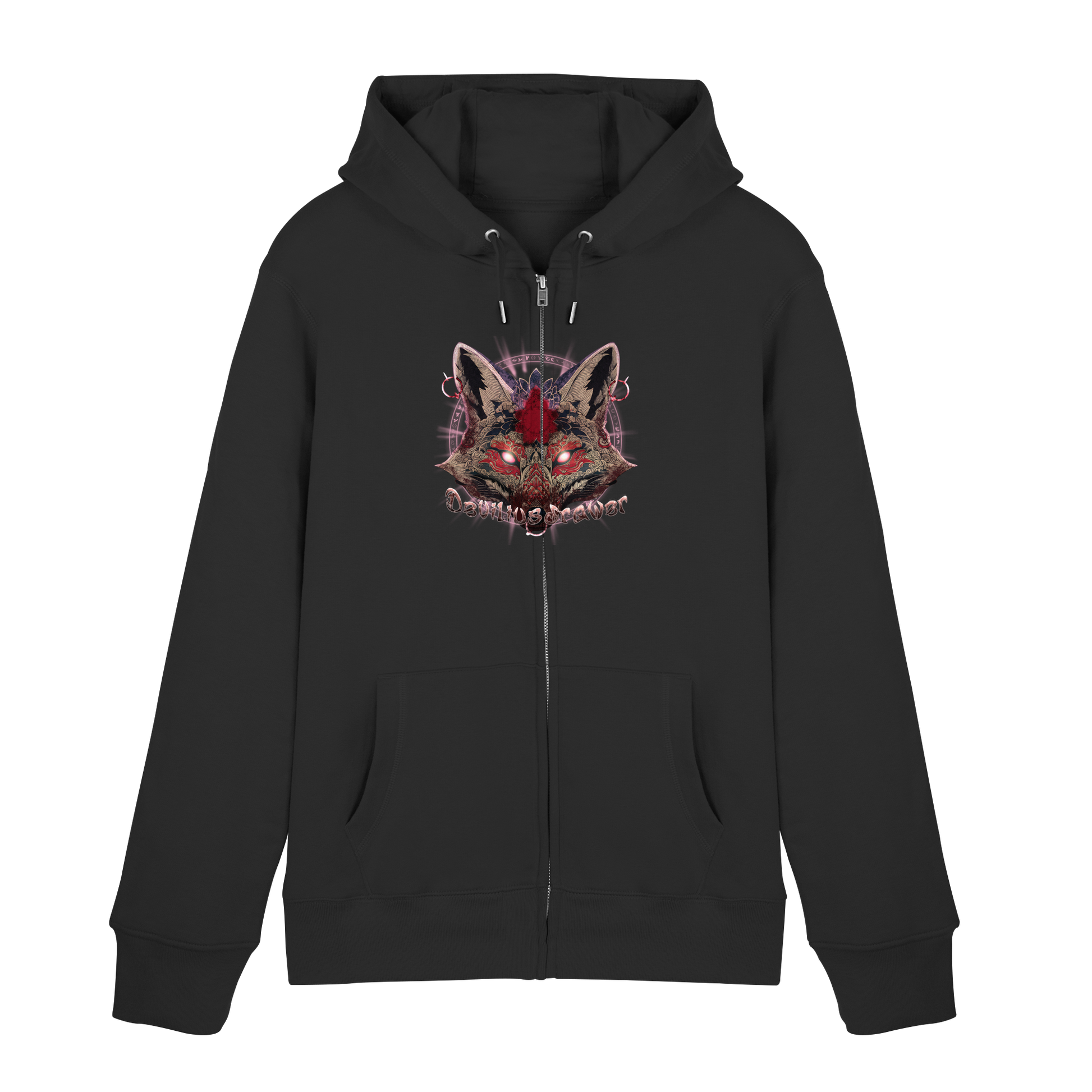Der Deviliusdrawer Demon Kitsune Zipper vereint kraftvolle Symbolik und künstlerische Raffinesse in einem exklusiven Design. Die dominierenden Rot- und Schwarztöne erzeugen eine fesselnde Harmonie, die Stärke und Geheimnis symbolisiert.