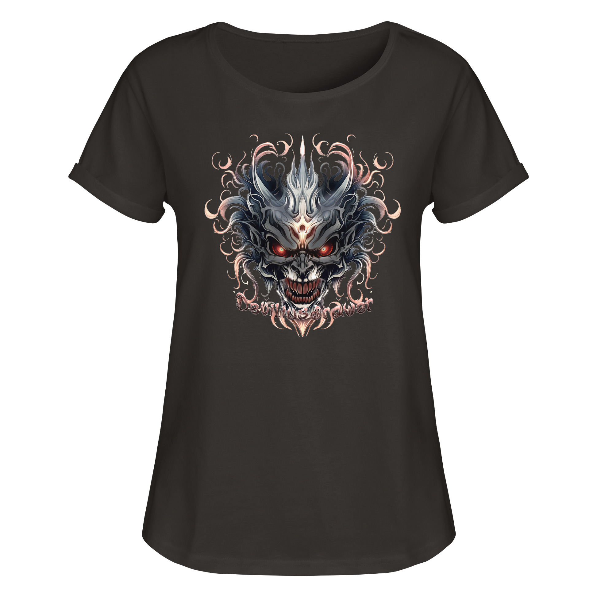 Erleben Sie die Kraft und Mystik der "Deviliusdrawer Demon Mask" auf diesem exklusiven Damen Roll-Up T-Shirt. Ein fesselndes Design, das mit seinen feurigen Rot- und Schwarztönen eine Aura von Stärke und Geheimnis ausstrahlt. Perfekt für die selbstbewusste Frau, die sich von der Masse abheben möchte.