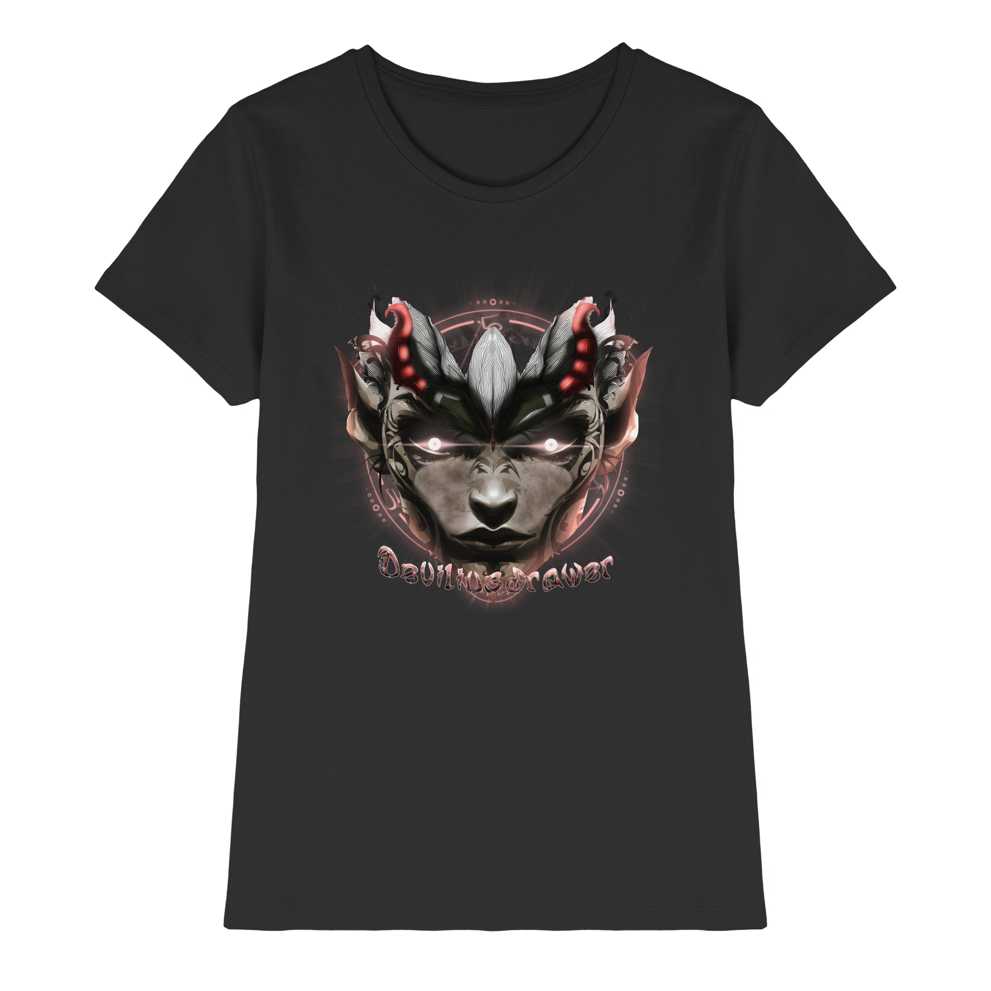 Das "Deviliusdrawer Devils Elf - Damen Premium Shirt" vereint mystische Kunst mit hochwertigem Tragekomfort. Der eindrucksvolle Elfen-Teufelskopf im Zentrum des Designs symbolisiert Stärke und Geheimnis. Die Kombination aus Rot, Schwarz und Weiß erzeugt eine kraftvolle, kontrastreiche Optik, die sowohl rebellisch als auch elegant wirkt.