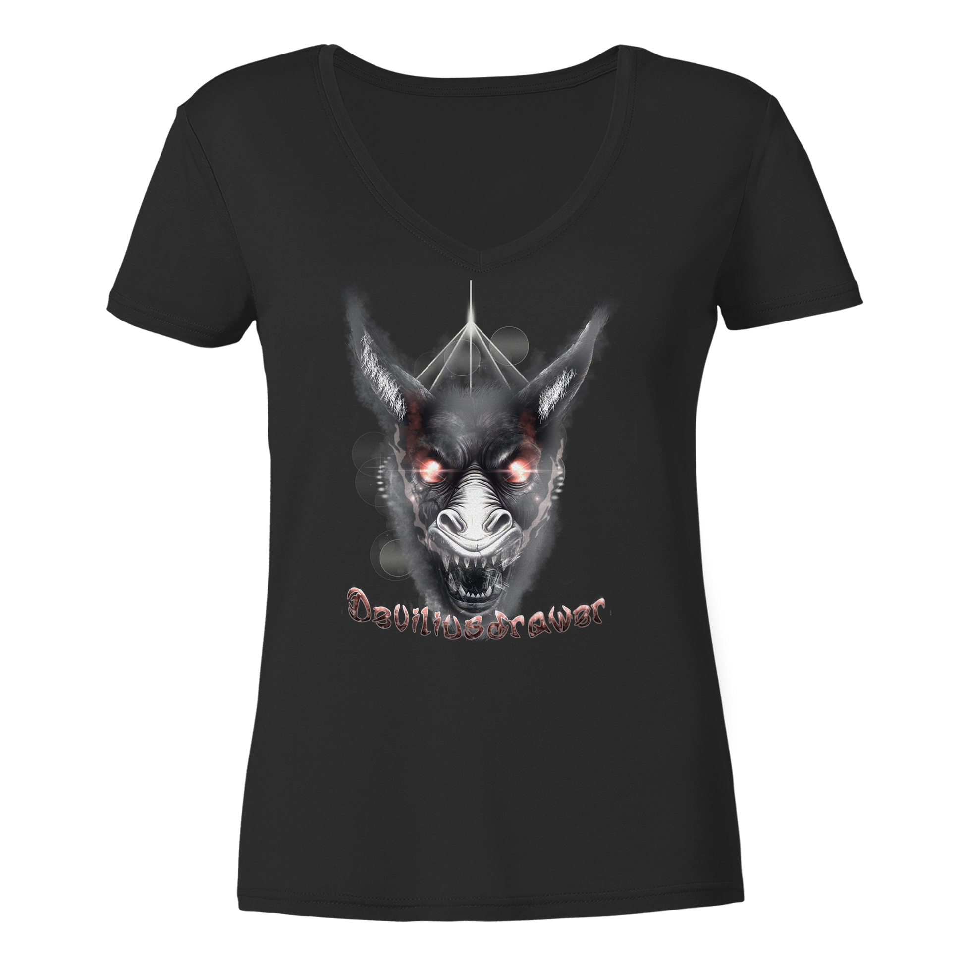Entfessle deine wilde Seite mit dem limitierten "Deviliusdrawer Evil Donkey" Damen V-Neck Shirt. Perfekt für starke Frauen, die keine Angst haben, aufzufallen.