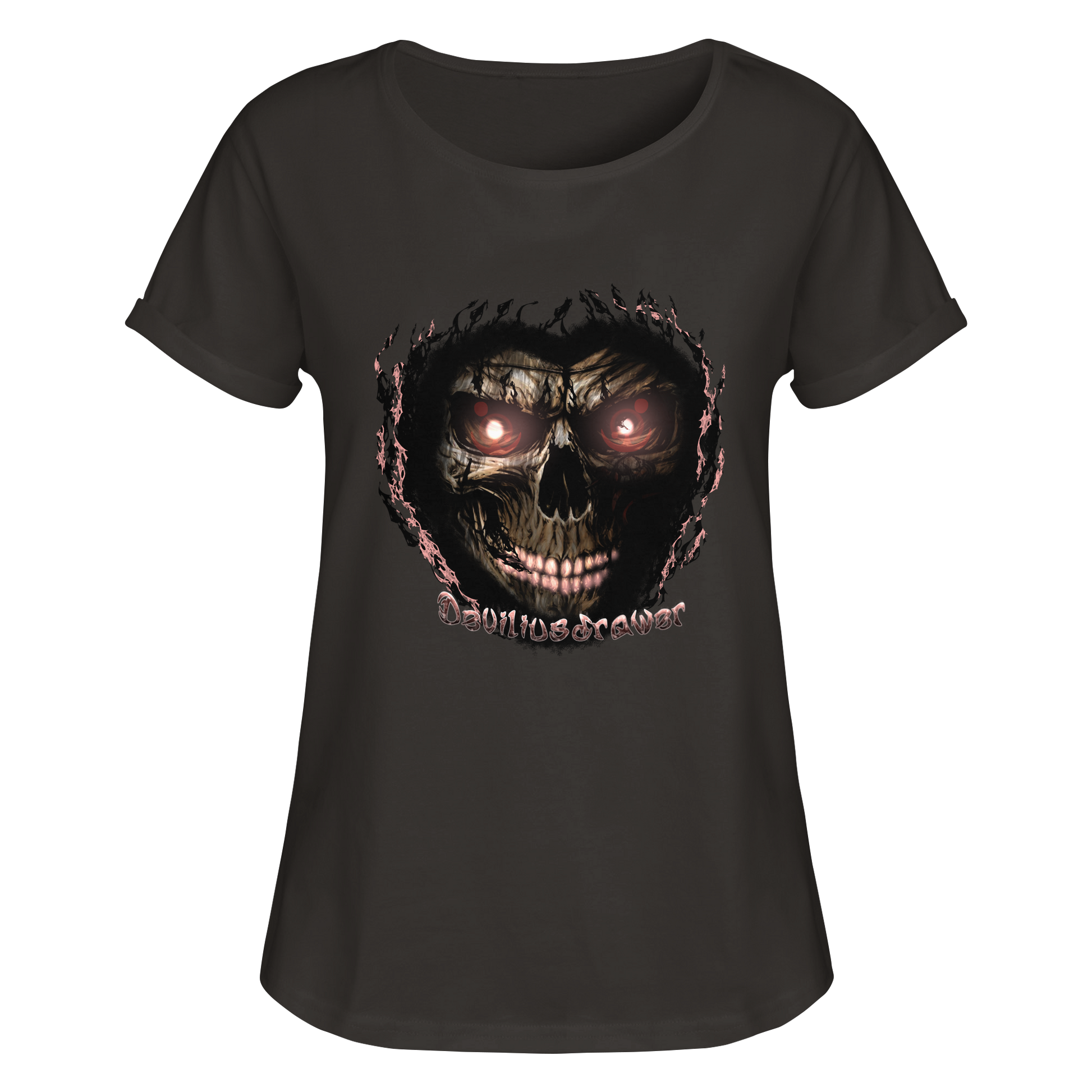 Erlebe den dunklen Charme mit dem Deviliusdrawer Glow Skeleton Damen Roll-Up T-Shirt. Dieses limitierte Design vereint furchterregenden Stil mit einzigartigem Komfort.