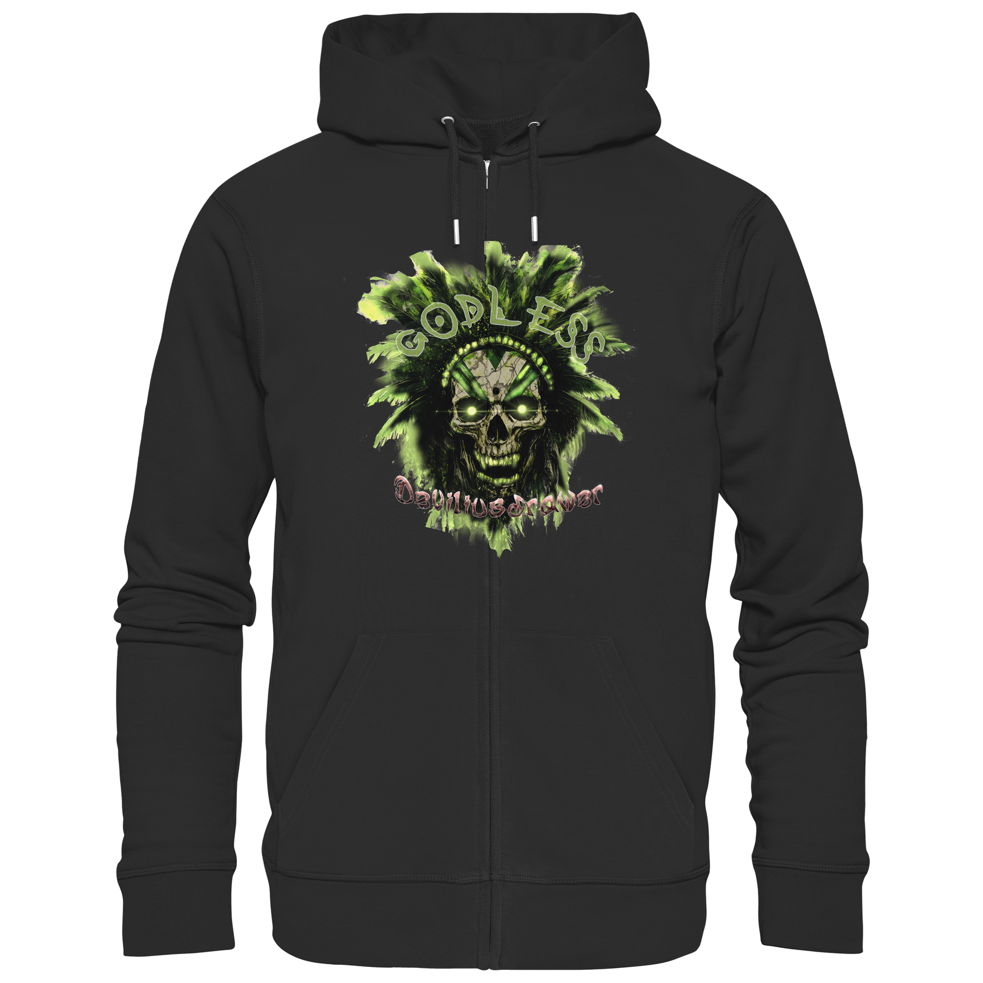 Spüre den Nervenkitzel der Rebellion mit dem Deviliusdrawer Godless Skull - Zipper. Dieses einzigartige Sweatshirt vereint dunkle Ästhetik mit urbanem Stil.