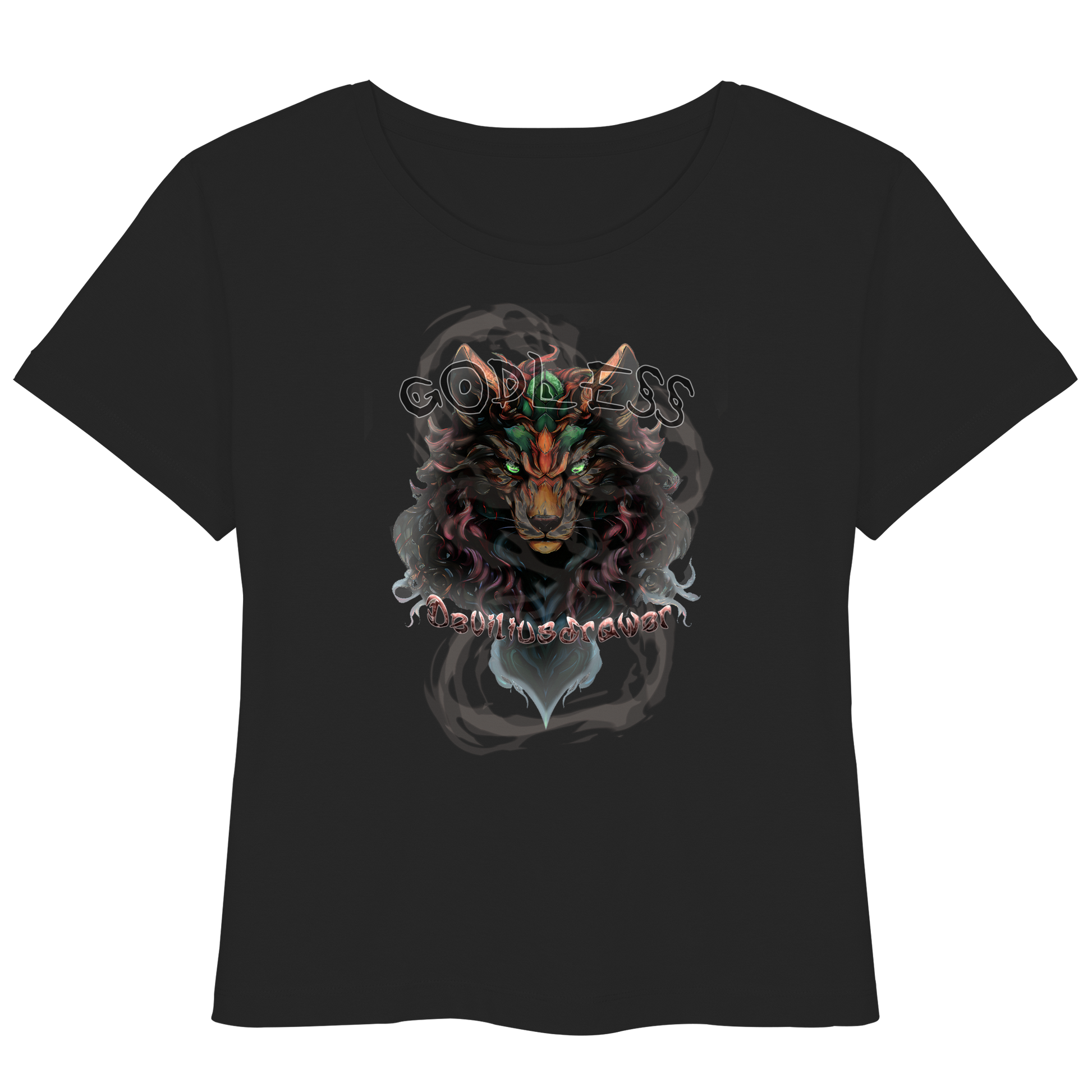 Die "Godless Wolf" Damen T-Shirt von Deviliusdrawer ist mehr als nur ein Kleidungsstück – es ist eine Lebenseinstellung. Mit einem beeindruckenden Wolfsmotiv, das Stärke und Freiheit symbolisiert, ist dieses Shirt perfekt für die mutige und unabhängige Frau.