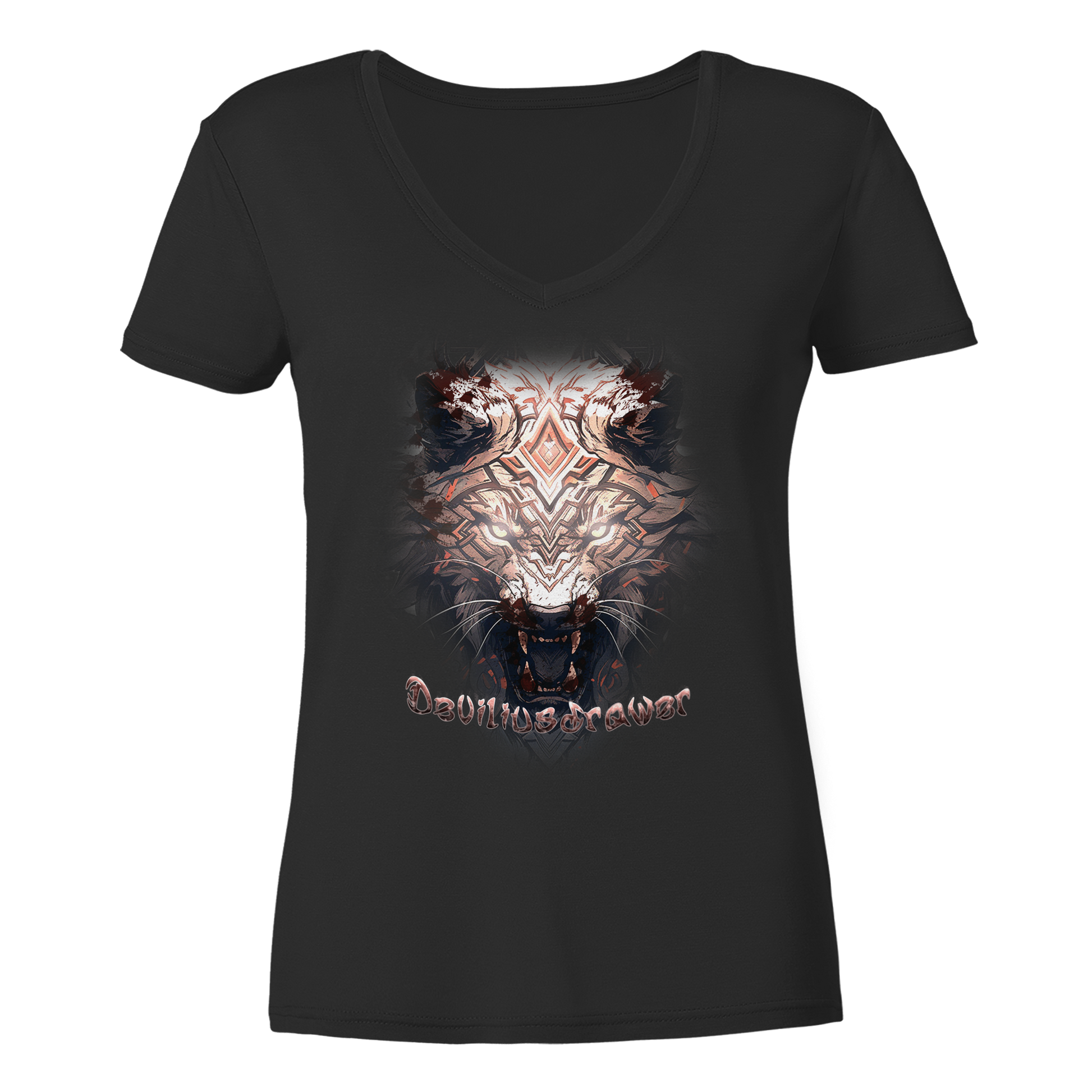 Entfesseln Sie Ihre innere Stärke mit dem Deviliusdrawer Gold Metal Tiger - Ladies V-Neck Shirt!