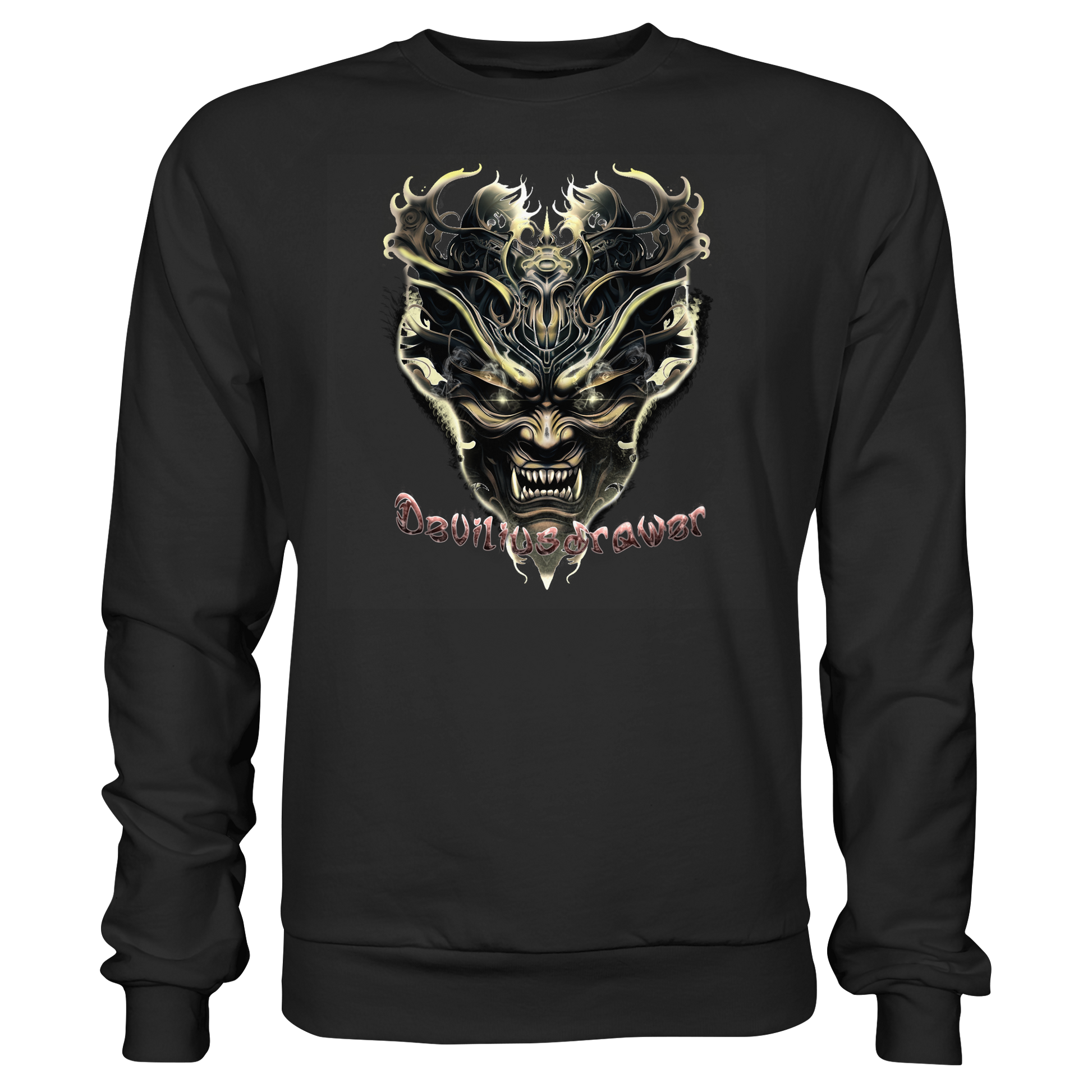 Der Deviliusdrawer Golden Demon Vampire Sweatshirt entführt dich in eine Welt voller Mystik und Abenteuer. Mit einem beeindruckenden Dämonen-Design, das durch seine detaillierte Gestaltung besticht, wirst du garantiert Blicke auf dich ziehen.