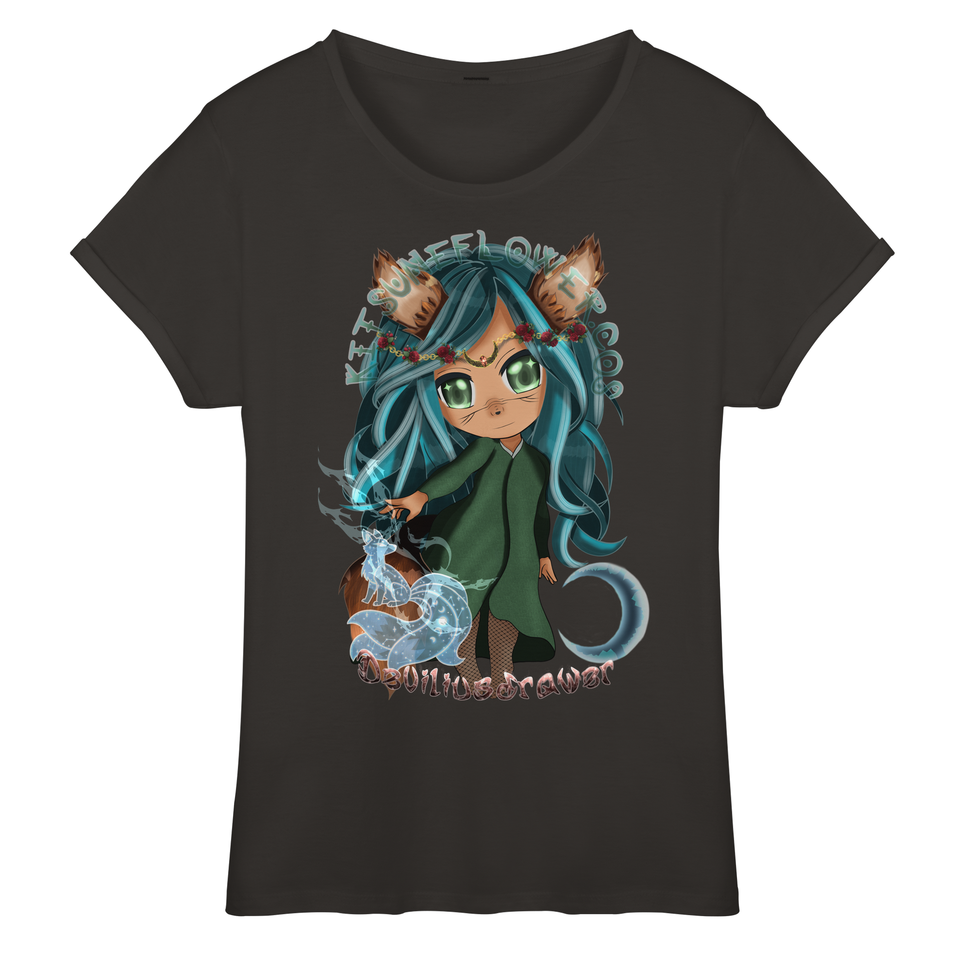 Entdecken Sie das einzigartige Deviliusdrawer Kitsuneflower Damen Roll-Up T-Shirt – eine Symphonie aus Kunst und Mode. Dieses limitierte Design vereint die Magie des Kitsune mit floralen Elementen, um Ihnen ein Gefühl von Mystik und Eleganz zu verleihen.