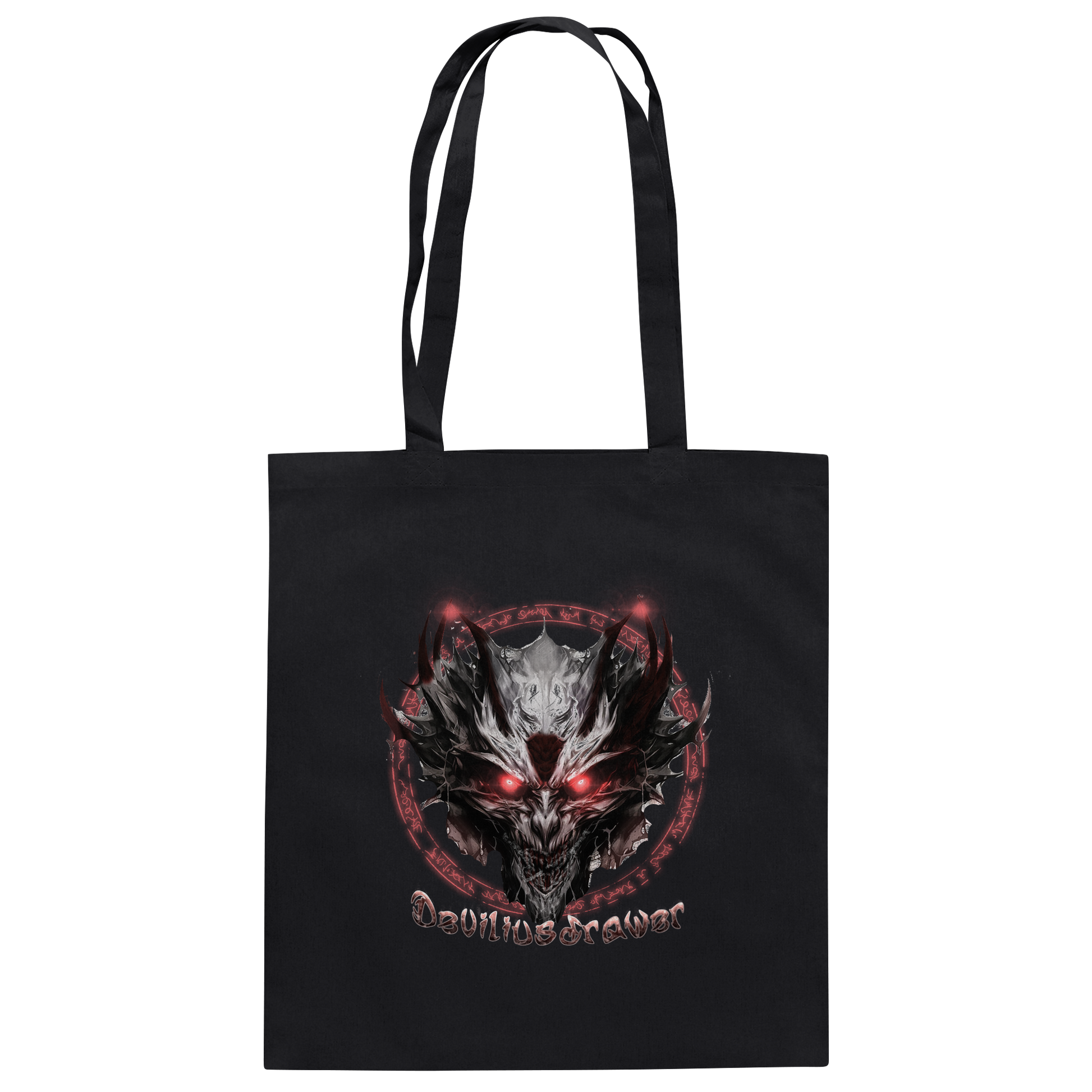 Entdecken Sie die Magische Glow-Teufel Baumwolltasche, die Ihre wilde Seite zum Vorschein bringt. Mit einem eindrucksvollen Teufelsmotiv und leuchtenden roten Akzenten, zieht diese Tasche alle Blicke auf sich. Perfekt für alle, die das Besondere suchen.