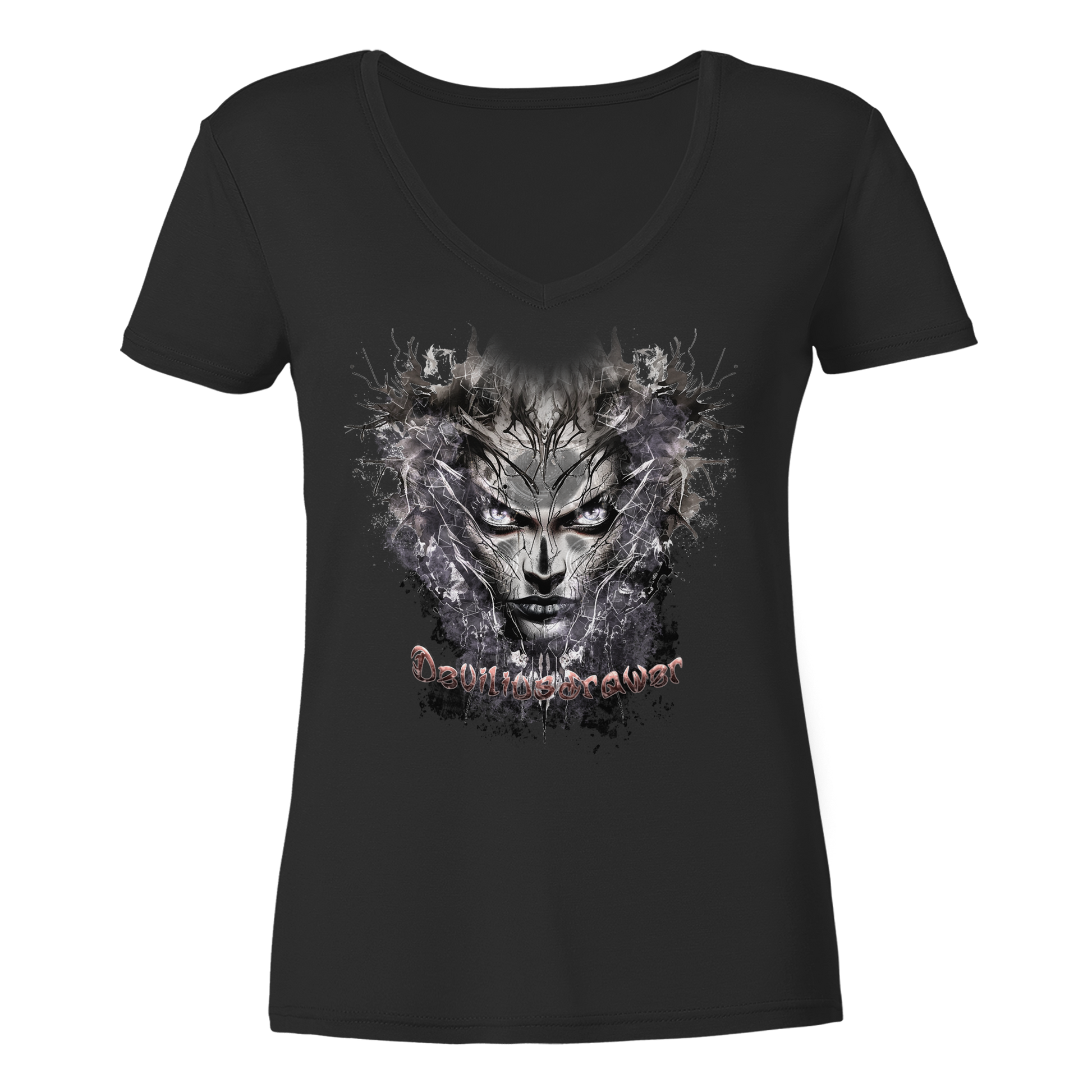 Die Deviliusdrawer Nature Druid - Ladies V-Neck Shirt vereint die wilde Schönheit der Natur mit einem kraftvollen Design, das Ihre innere Stärke hervorhebt. Dieser limitierte Druck ist nicht im Geschäft zu finden und wird in Deutschland mit höchster Sorgfalt hergestellt.