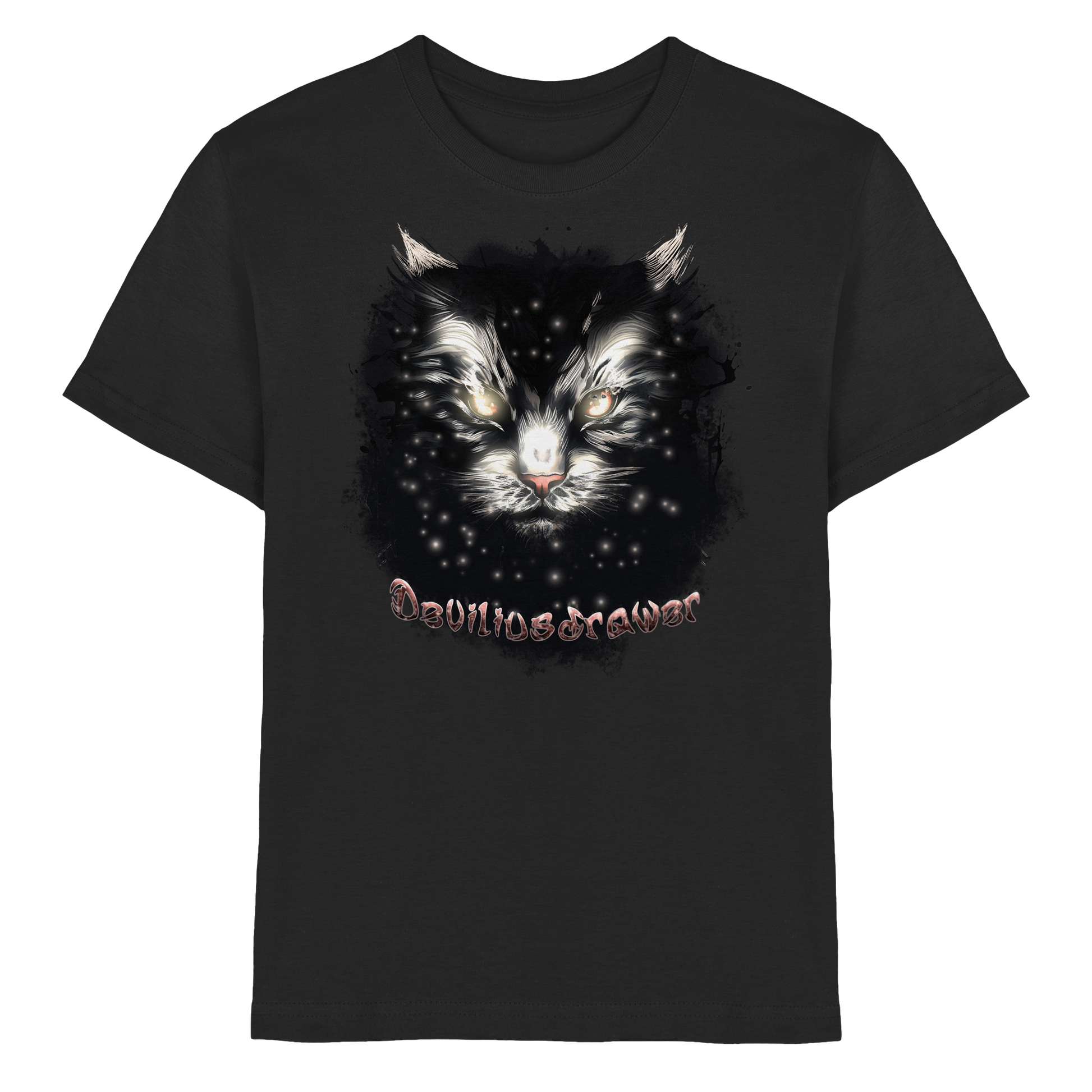 Das "Deviliusdrawer Star Cat - Kinder Premium Shirt" vereint fantasievolle Designs mit höchster Qualität. Der geheimnisvolle Katzenkopf, umgeben von funkelnden Sternen, zieht jedes Kind in seinen Bann. Die kontrastreichen Schwarz- und Weißtöne schaffen eine magische Atmosphäre, die Abenteuerlust weckt.