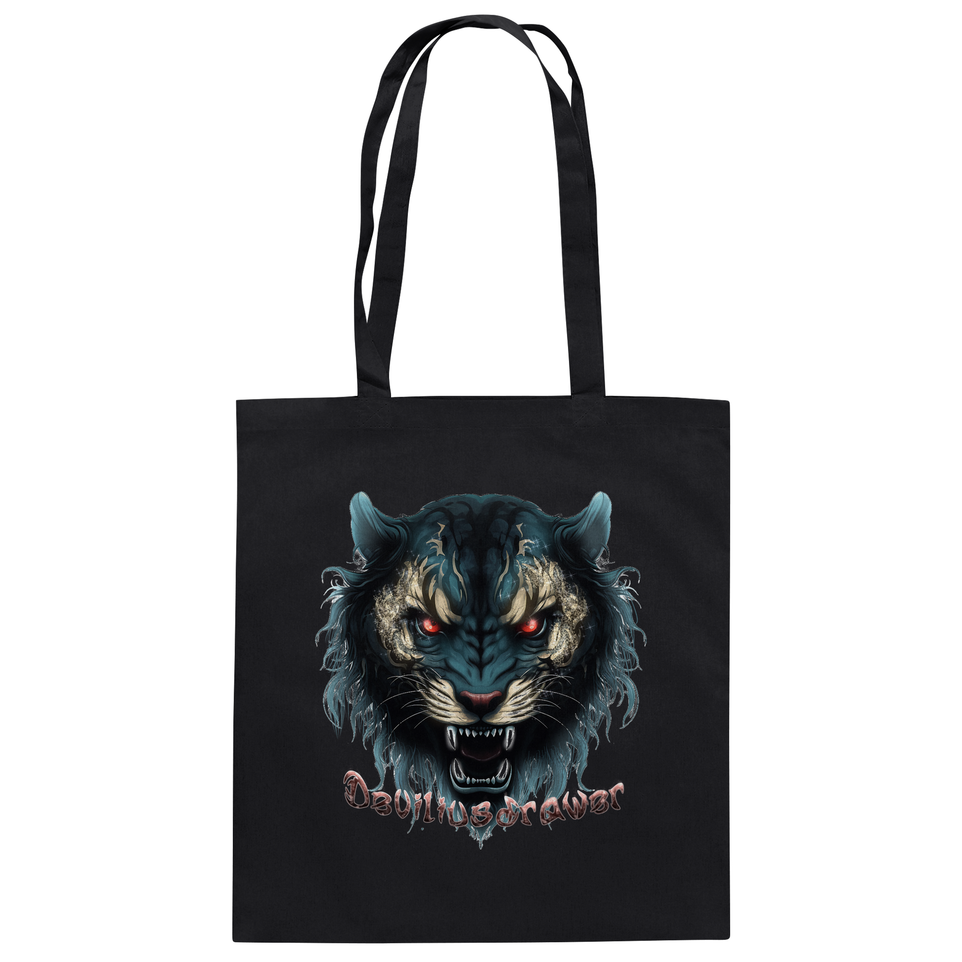 Die Deviliusdrawer Tigercat Baumwolltasche fängt die Essenz der Freiheit und Stärke ein. Das fesselnde Tigermotiv mit glühenden Augen zieht alle Blicke auf sich und symbolisiert Mut und Abenteuerlust.