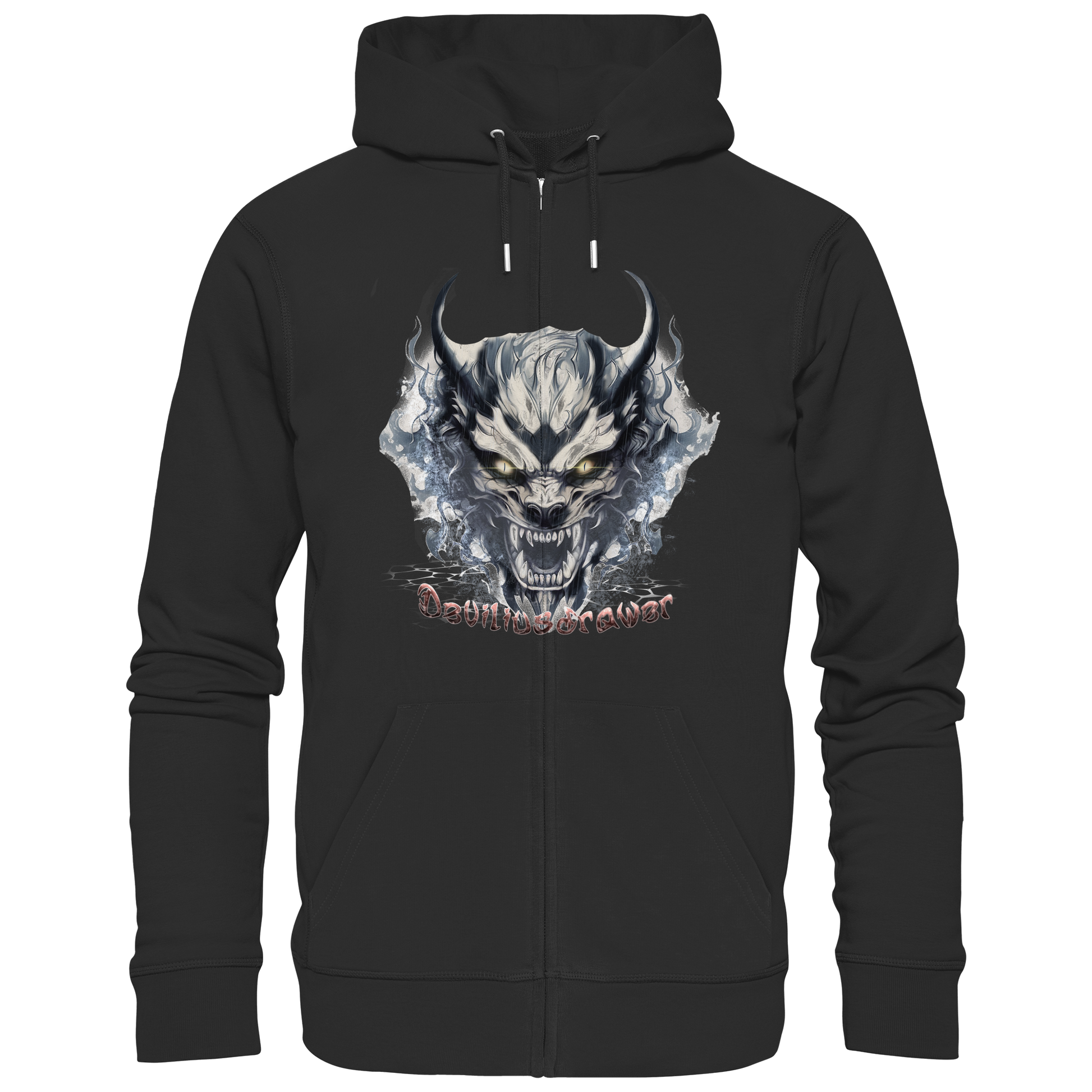 Mit dem Deviliusdrawer Water Demon Zipper Sweatshirt trägst du nicht nur Mode, sondern eine Geschichte. Der atemberaubende Druck eines finsteren Wasser-Dämons in Blau- und Grautönen symbolisiert Stärke und Mystik, während die leuchtenden Augen einen Hauch von Geheimnis und Abenteuer ausstrahlen.