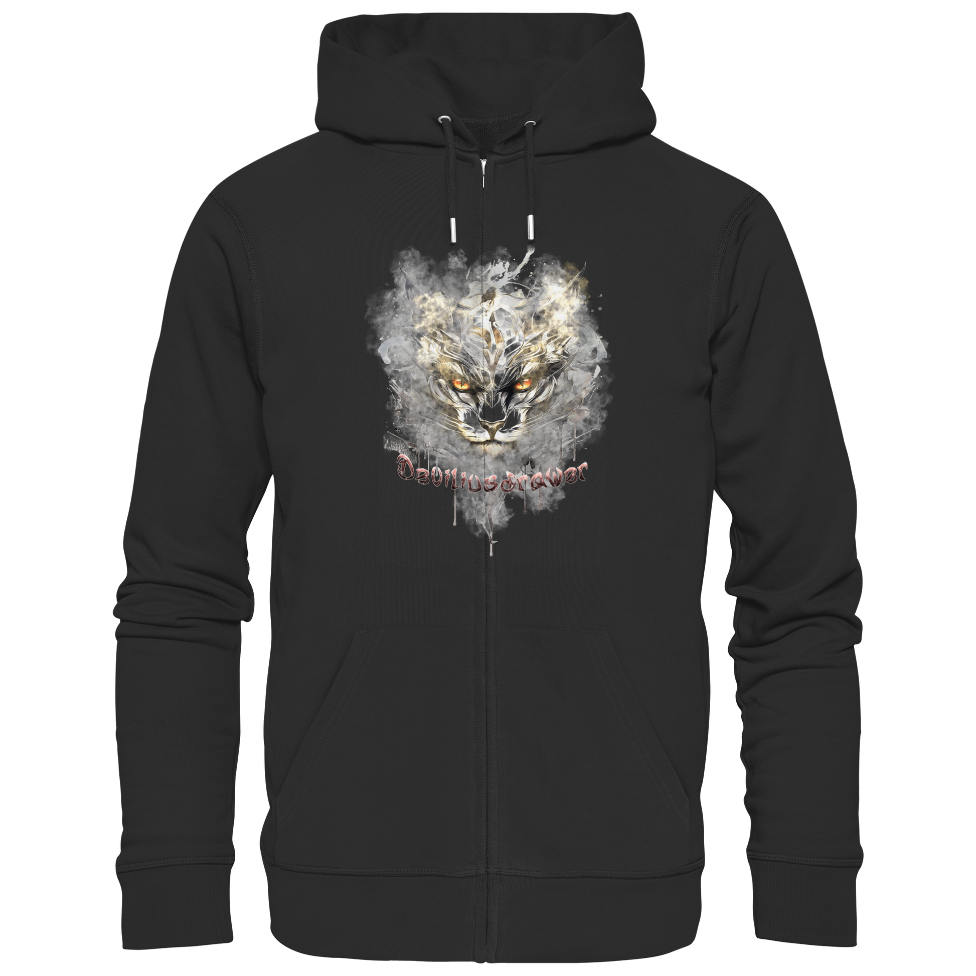 Tauchen Sie ein in die mystische Welt des Deviliusdrawer White Catgod - Zipper Sweatshirt. Das einzigartige Design, dominiert von einem majestätischen Katzenwesen, weckt innere Stärke und Selbstbewusstsein. Lassen Sie sich von den leuchtenden Augen und der kunstvollen Farbgebung verzaubern.