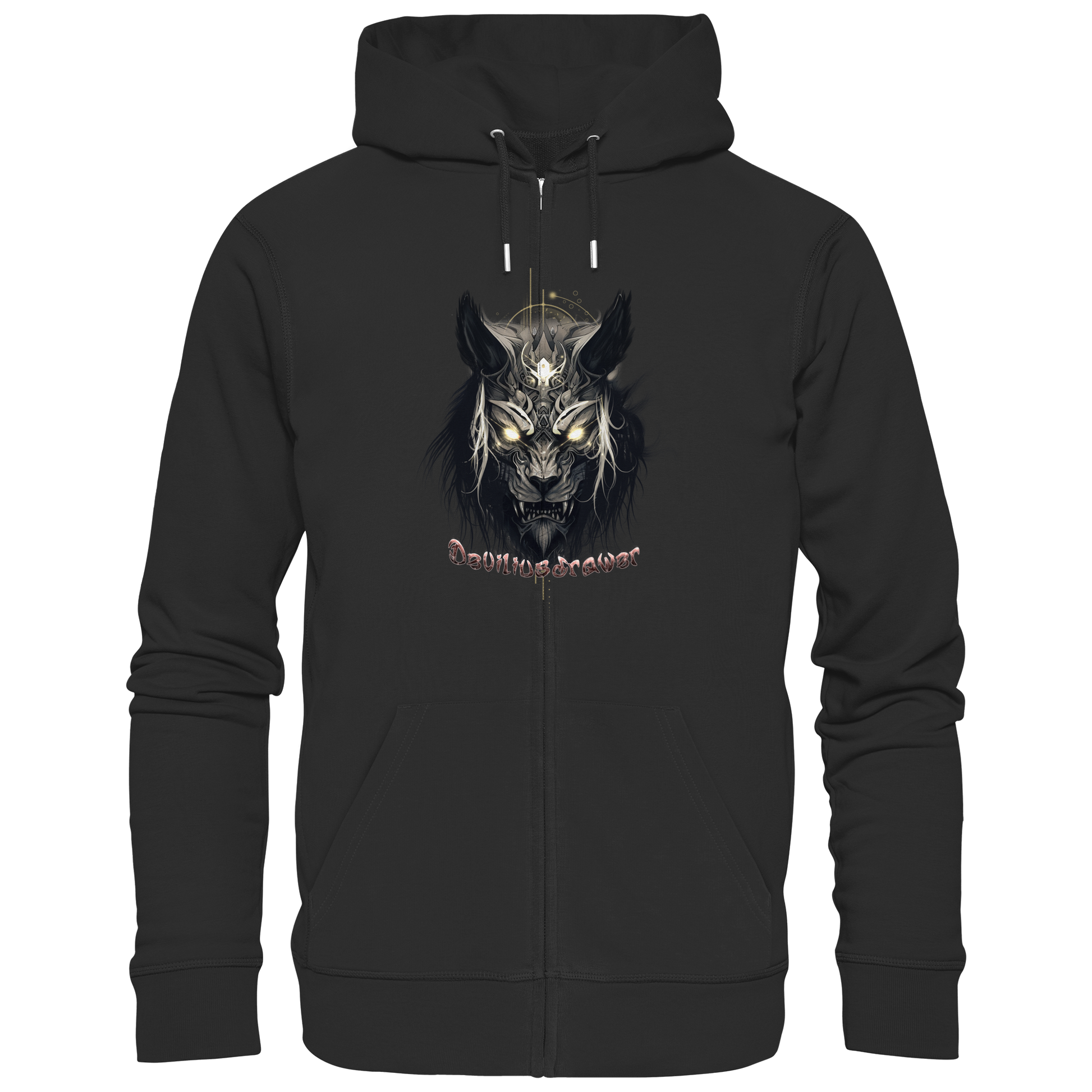 Erlebe die Magie der Wildnis mit dem Deviliusdrawer Wolftiger Zipper. Dieses einzigartige Design vereint die Kraft des Wolfs und die Eleganz des Tigers in einem atemberaubenden Motiv. Der detailreiche Druck, harmonisch in Grau- und Schwarztönen gehalten, symbolisiert Stärke und Mystik.