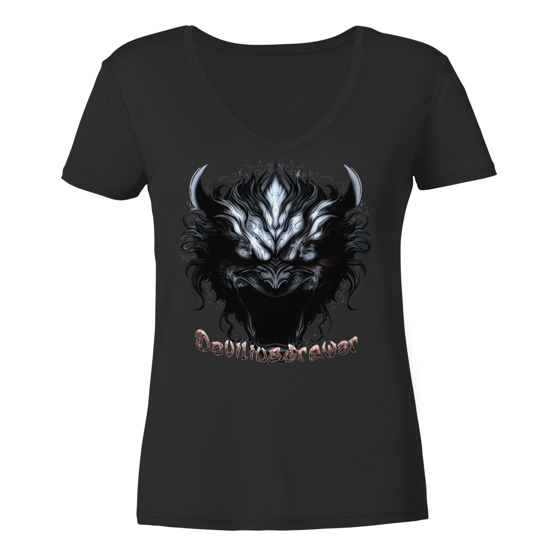 Entfesseln Sie Ihre innere Dämonin mit dem Deviliusdrawer Zombie Demon - Ladies V-Neck Shirt. Diese limitierte Auflage bringt ein kunstvolles Design voller mystischer Elemente und dunkler Verführung.